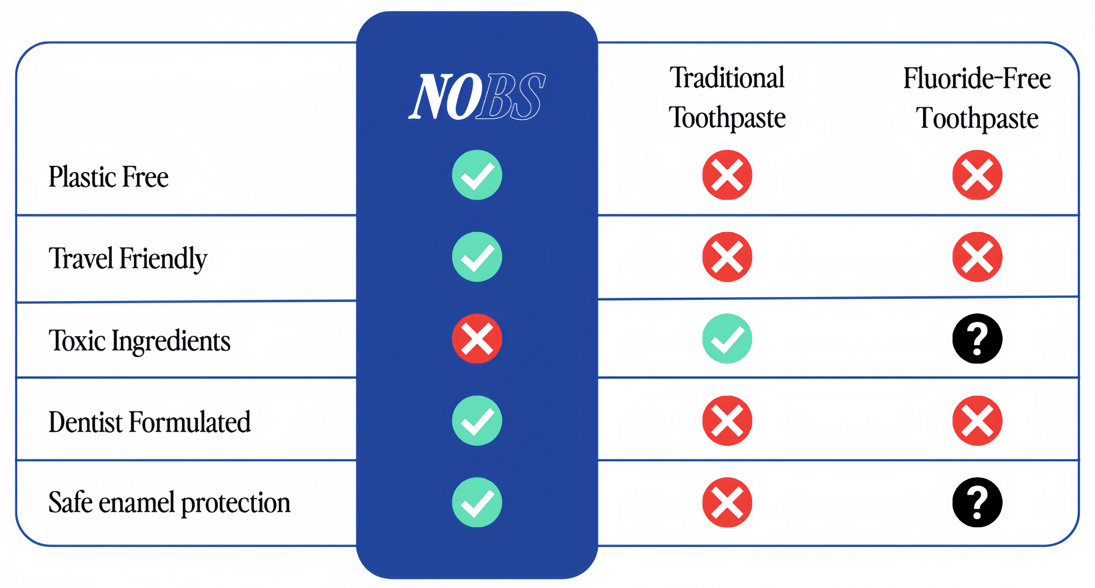 NOBS isn’t just another toothpaste. It’s a smarter way to brush. Our formula uses 5% nano-hydroxyapatite (n-Ha), the same mineral your teeth are made of, to naturally strengthen enamel and support long-term oral health.